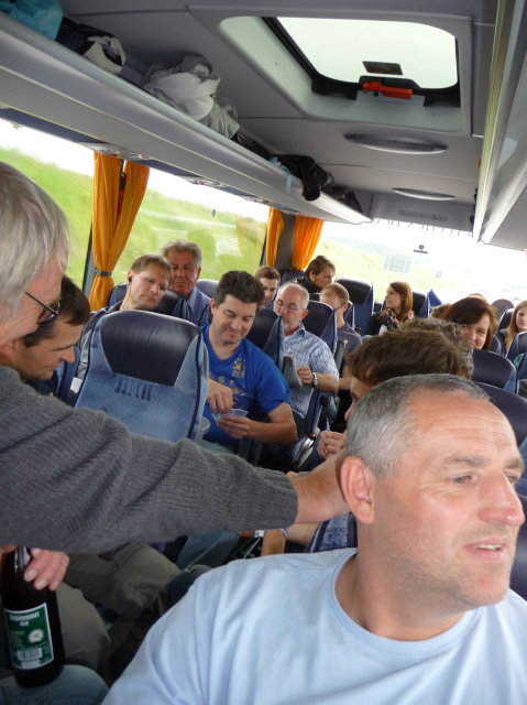 Am Samstag früh um 7 Uhr ging's in Waging los. Nach der ersten Brotzeit machte man Zwischenstation in Stuttgart, um das Daimler-Museum zu besichtigen. Allerhand Fahrzeuge mit dem Stern drauf konnten hier begutachtet werden. Außerdem konnte man selbst durch den Fußball-WM-Bus von 1970 gehen und mal probesitzen. Anschließend ging's weiter bis Karlsruhe zum Hotel. Um 19 Uhr war dann Abfahrt per Straßenbahn und Anweisungen des Busfahrers zunächst mal in die verkehrte Richtung, dann in Richtung Innenstadt zum gemeinsamen Abendessen. Nächsten Tag hieß es schon um 12.30 den Weg ins Stadion einzuschlagen, wo noch ziemlich lange Zeit für Brotzeit blieb. Endlich im Stadion, wurde man von den Löwen nicht gerade durch guten Fußball verwöhnt. Eher die Hooligans unserer Blauen fielen auf durch Pyro und Rauchbomben - unverbesserlich eben! Das Spiel ging 0:2 verloren und die Relegation war wenigstens erreicht - letzte Chance! Der guten Laune bei der Heimfahrt tat das jedoch keinen Abbruch. Halb zwei war man wieder in Waging. Schön war's wieder!