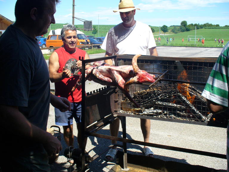 Schafgrillen am Sportplatz 2011 Bitte für Fotos 2011 auf nachstehenden Link klicken! ********************************** Spanferkelgrillen 2010 Diesmal gab's ein Spanferkel im Wildschweinfell und mit Hörndln. Dank Cheesi's guter Vorbereitung wurde es eine Delikatesse mit guter Kruste. Auch die "Willkommen-Schnäpse" mußte natürlich jeder über sich ergehen lassen. Leider war halt kein ideales Grillwetter, so daß der Grill wegen des Regens etwas Räucherkammer-Flair aufkommen ließ... *********************************************** Lammgrillen 2009 Beim Toni in Polsing gab's diesmal ein Schafböckerl, dem wieder die Hörner für den besonderen Tropfen abgenommen wurden.... *************************************** Lammgrillen 2008 Diesmal wurde ein sechsfüßiges Schaf gegrillt. Als Vorspeise gab's noch ne Pute vom Gogei. Alles schmeckte wieder bestens und wurde auch gut begossen...