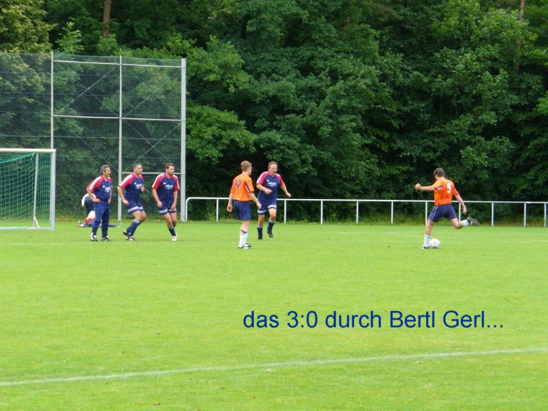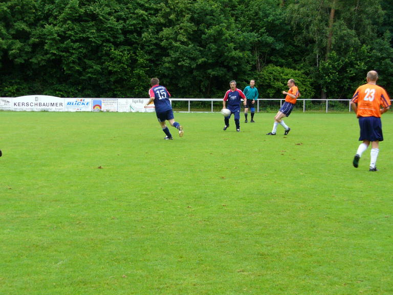 ***************************** 15 Mannschaften nahmen am 23. AH-Kleinfeld-Fußballturnier 2007 des TSV Überlingen/Ried teil. 8 Mann waren davon für Tengling auf die 6-stündige Zugreise gegangen um nach genügend Einnahme eines Dopingmittels in grünen Flaschen das große Ziel des Turniersiegs zu erreichen. Höchst motiviert wurden sie von den Überlinger Fußballfreunden am Bahnhof in Radolzell abgeholt. Dann ging's los... In der Gruppe 1 setzte sich SV Bohlingen vor 1.FC Rielasingen-Arlen, SG Liggeringen-Güttingen, BSV Nordstern Radolfzell und SV Riedheim durch. Die Gruppe 2 gewann TSV Tengling vor ESV Südstern Singen, FC Böhringen, FC Ramsen und SV Mühlhausen. Die Gruppe 3 gewann TSV Überlingen/Ried vor FC Steißlingen, FC Hilzingen, VfR Horheim-Schwerzen und FC Stein am Rhein. In der Zwischenrunde setzten sich in der Gruppe A TSV Überlingen/Ried vor ESV Südstern Singen und SV Bohlingen durch. Die Gruppe 2 gewann TSV Tengling vor FC Steißlingen und SG Liggeringen-Güttingen. Sieger des Turniers wurde TSV Tengling nach 3:1 Sieg gegen TSV Überlingen/Ried. Die Siegerehrung nahm 1. Vorsitzender Roland Ehinger vor. Er dankte allen Mannschaften für die Teilnahme und die sportlich fairen Spiele. Ein großer Dank an dieser Stelle seitens des AH-Teams an die Überlinger Freunde für die großartige Ausrichtung des Turniers und dem besonderen Service für unser Team!!! Zum Nachtrag noch die Torschützen für Tengling: Vordermayer F. 5, Lebesmühlbacher C. 4, Lebesmühlbacher H. 2, Öllinger T. 2, Danzl M. 2 Tore